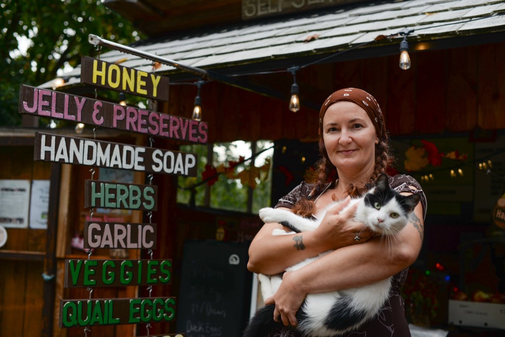 You can almost always find honey, eggs (chicken, duck, or quail), and firewood at the farmstand. When available, other items include produce, flowers, homemade soap, goat milk fudge, birdseed, and handmade cat toys. The stand is open year-round, although there is a limited selection of products in the winter due to lower temperatures which can cause certain items, such as honey, to freeze. However, Jacobs can set out items at the stand if customers text or message her on social media.